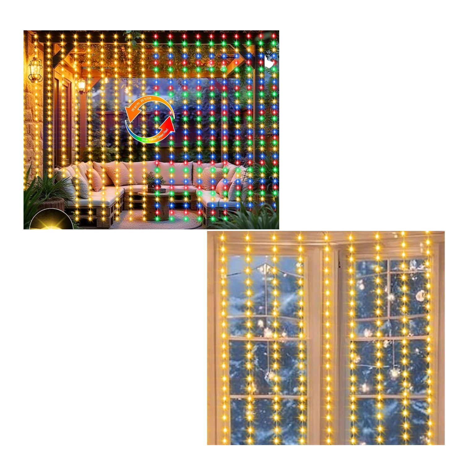 Remote Control 20′ x 10′ LED Curtain Lights (White or Multi-Color) Sheer drapes not included in price.